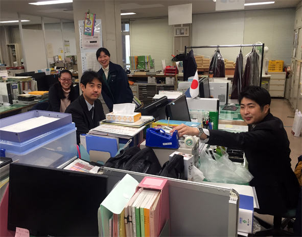 発表会の前に事務室で打ち合わせをする?学務係の職員さんたち?。