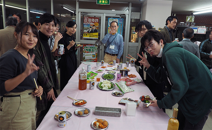 戸定会の常任理事会があり、懇親会で残った料理を研究室で食べて2次会?となりました(笑)